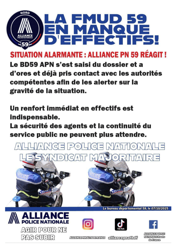 FMUD 59 MOTOCYCLISTES Déflation des effectifs... Publication : 7 octobre 2025 Lire la suite... Nord, Bureau Régional, Hauts de France